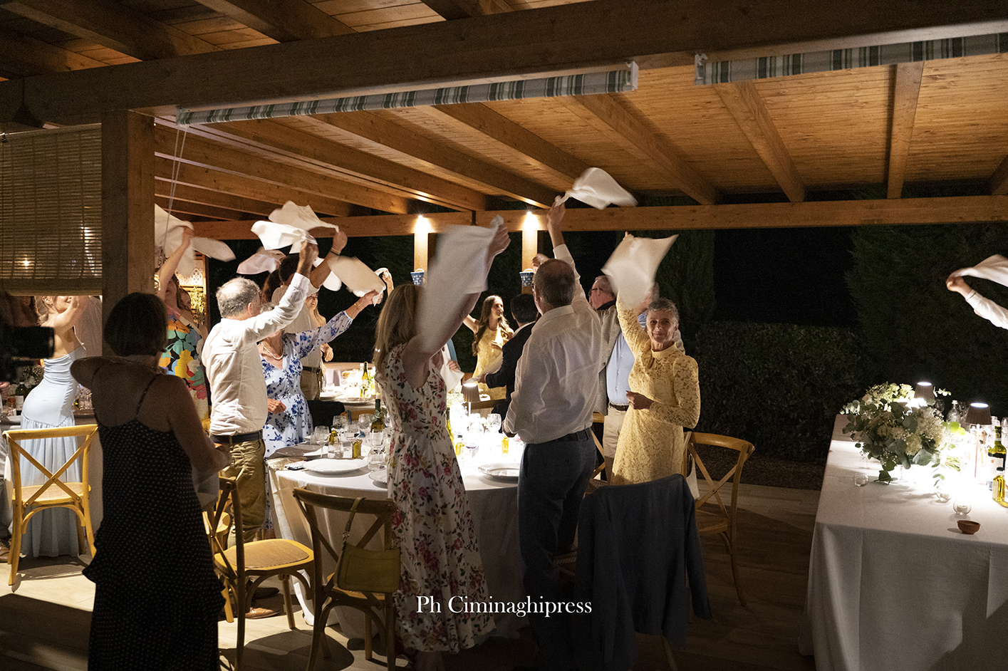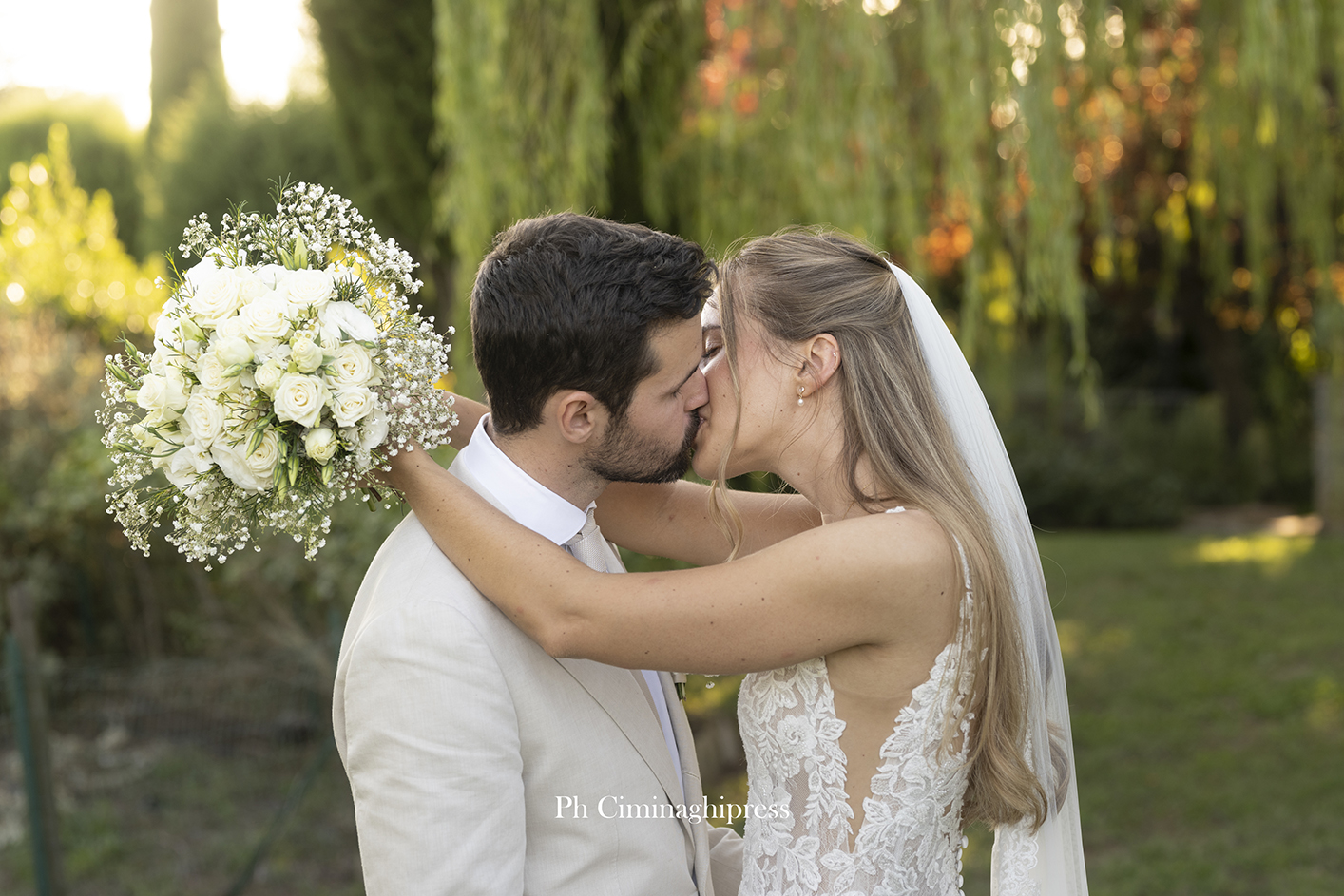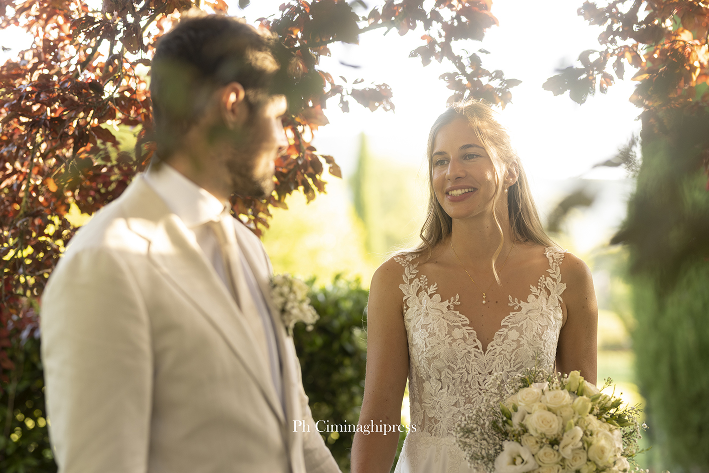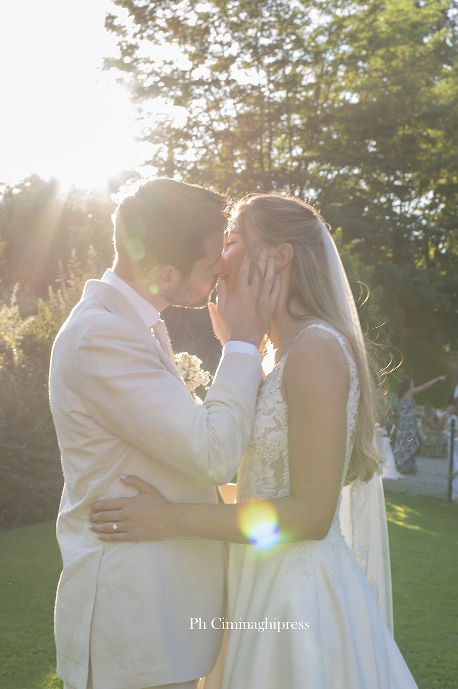 Wedding where the ceremony was held in the enchanting location Molino di Bordone, the service to the bride and groom with the sunset was very suggestive and the dinner by the pool created a splendid atmosphere.