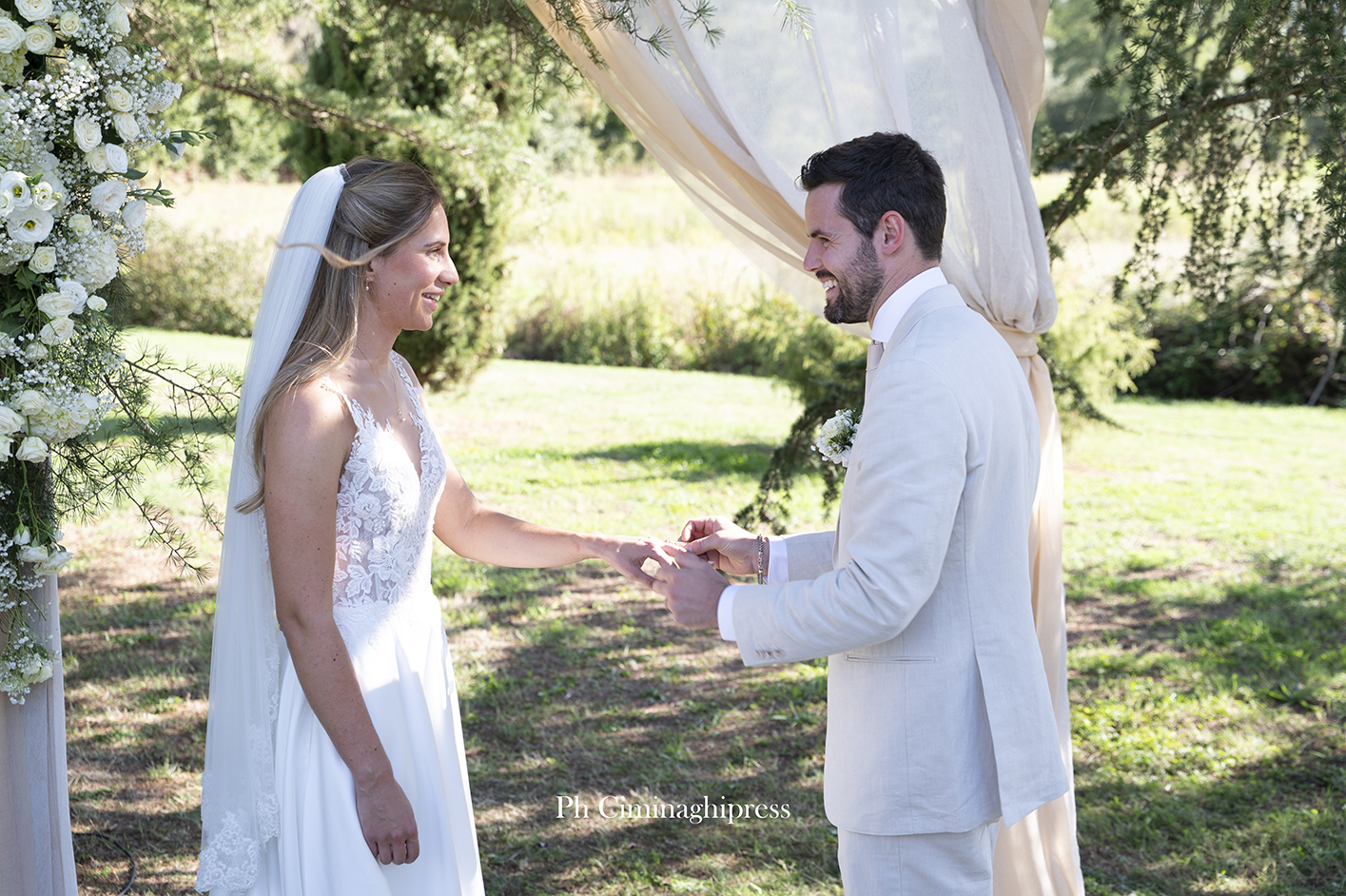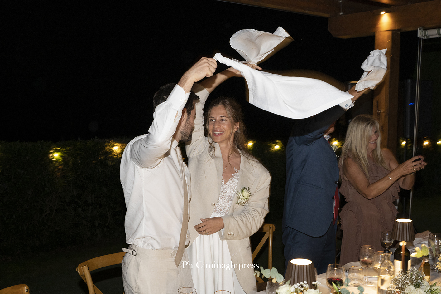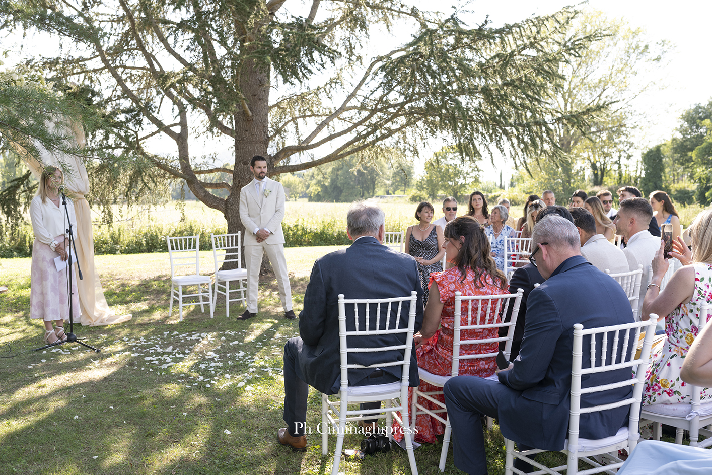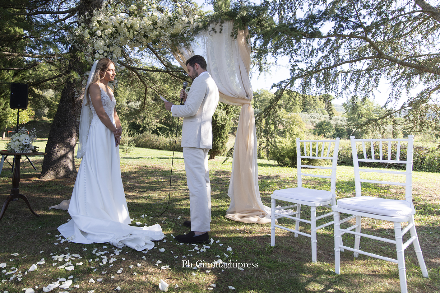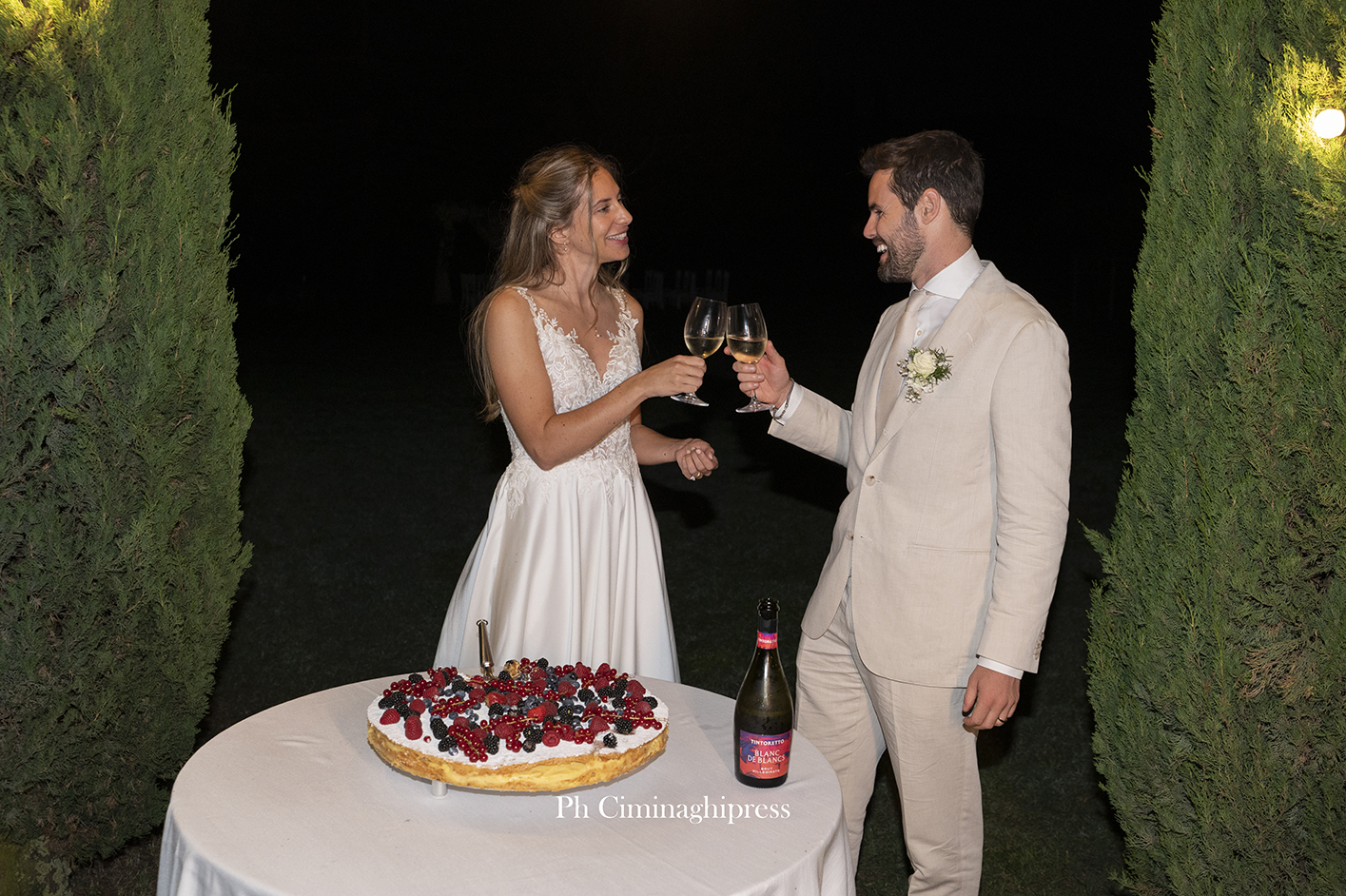 Wedding where the ceremony was held in the enchanting location Molino di Bordone, the service to the bride and groom with the sunset was very suggestive and the dinner by the pool created a splendid atmosphere.