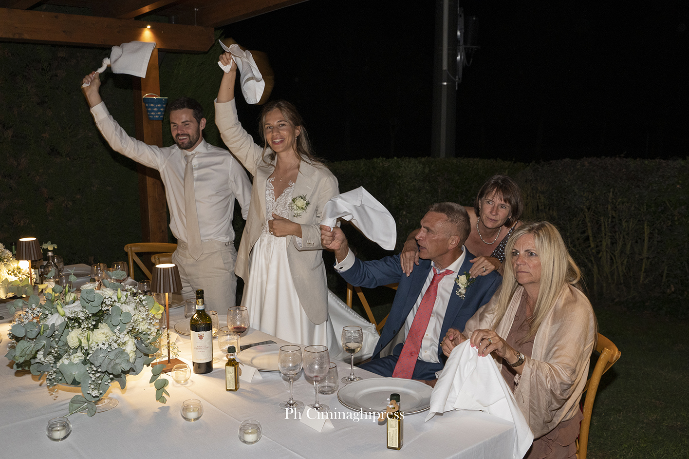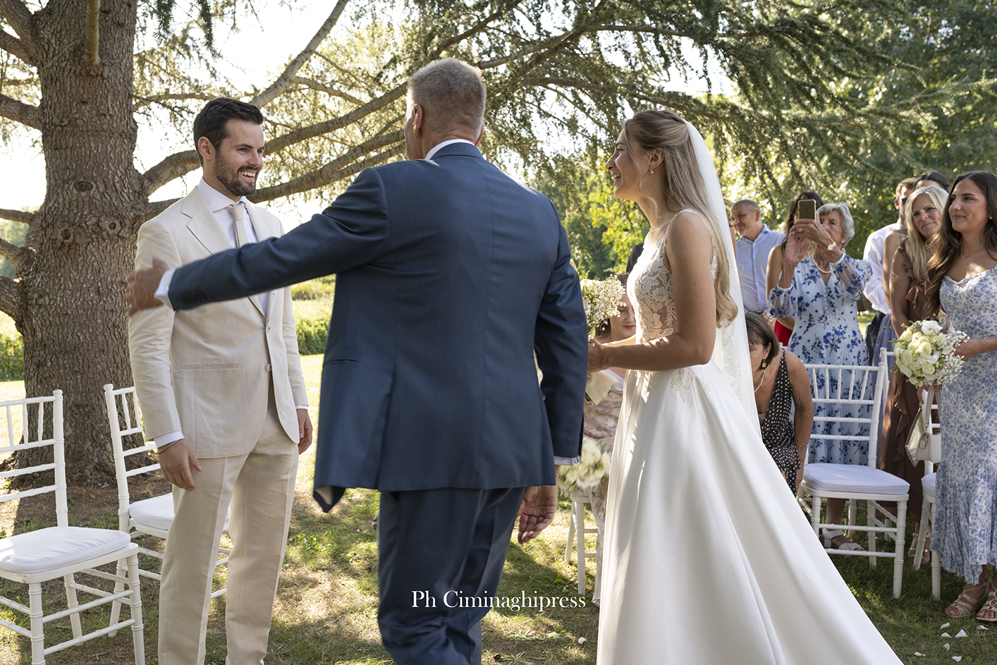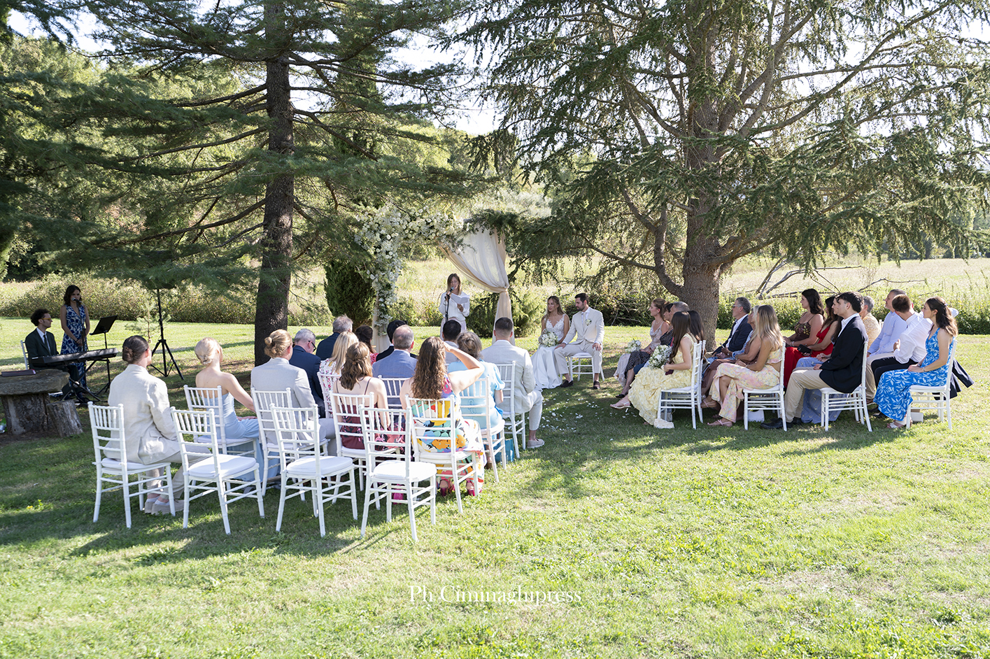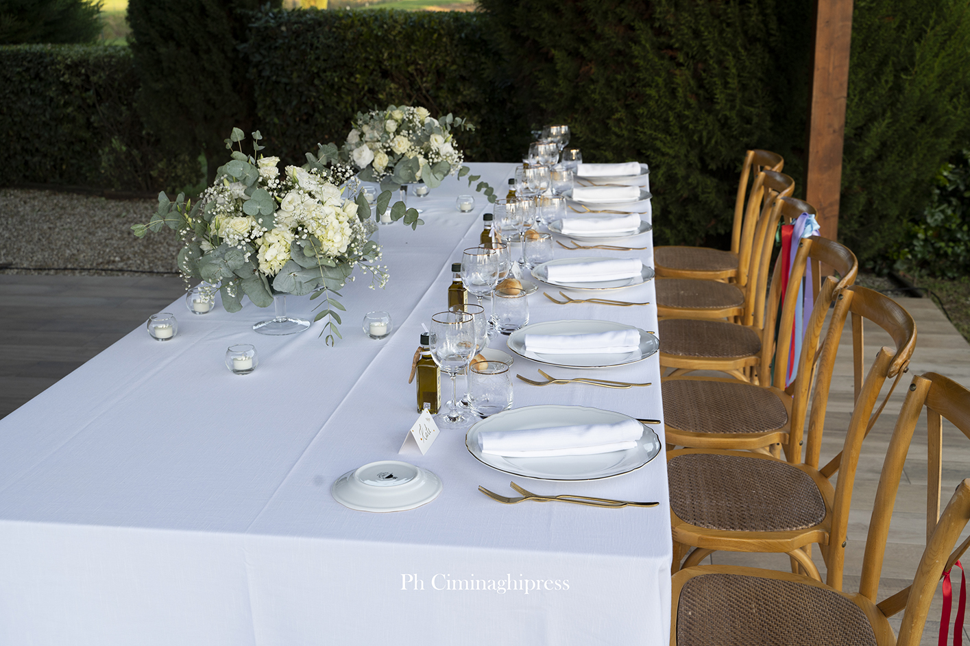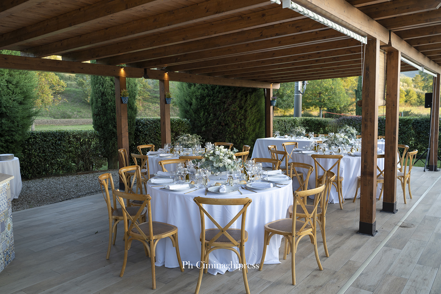 Wedding where the ceremony was held in the enchanting location Molino di Bordone, the service to the bride and groom with the sunset was very suggestive and the dinner by the pool created a splendid atmosphere.