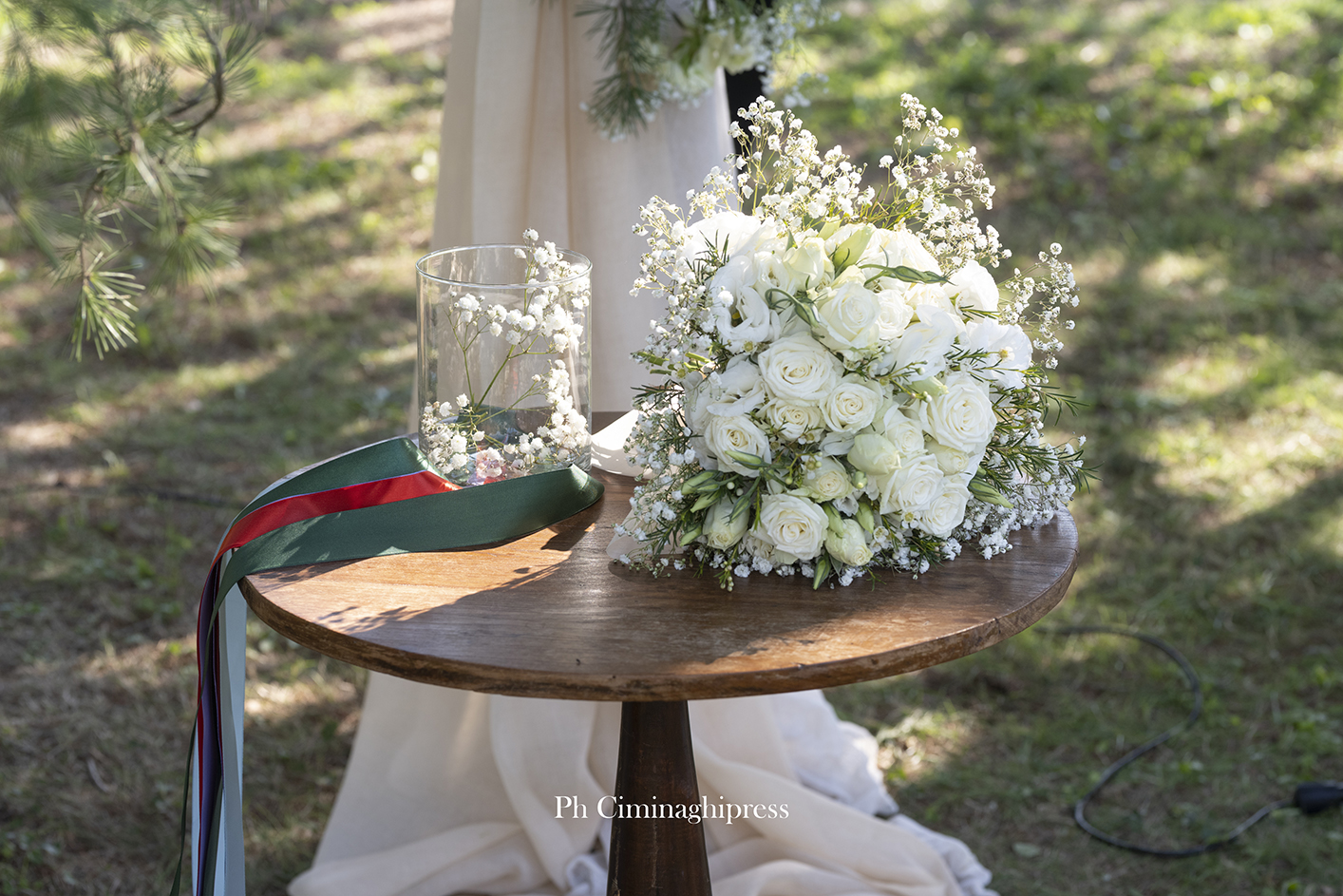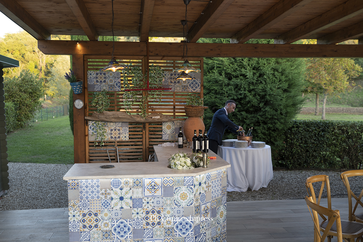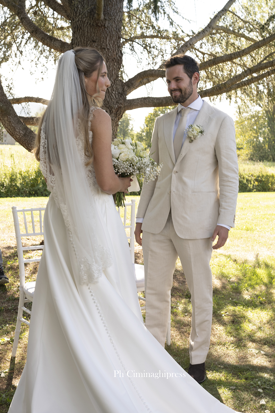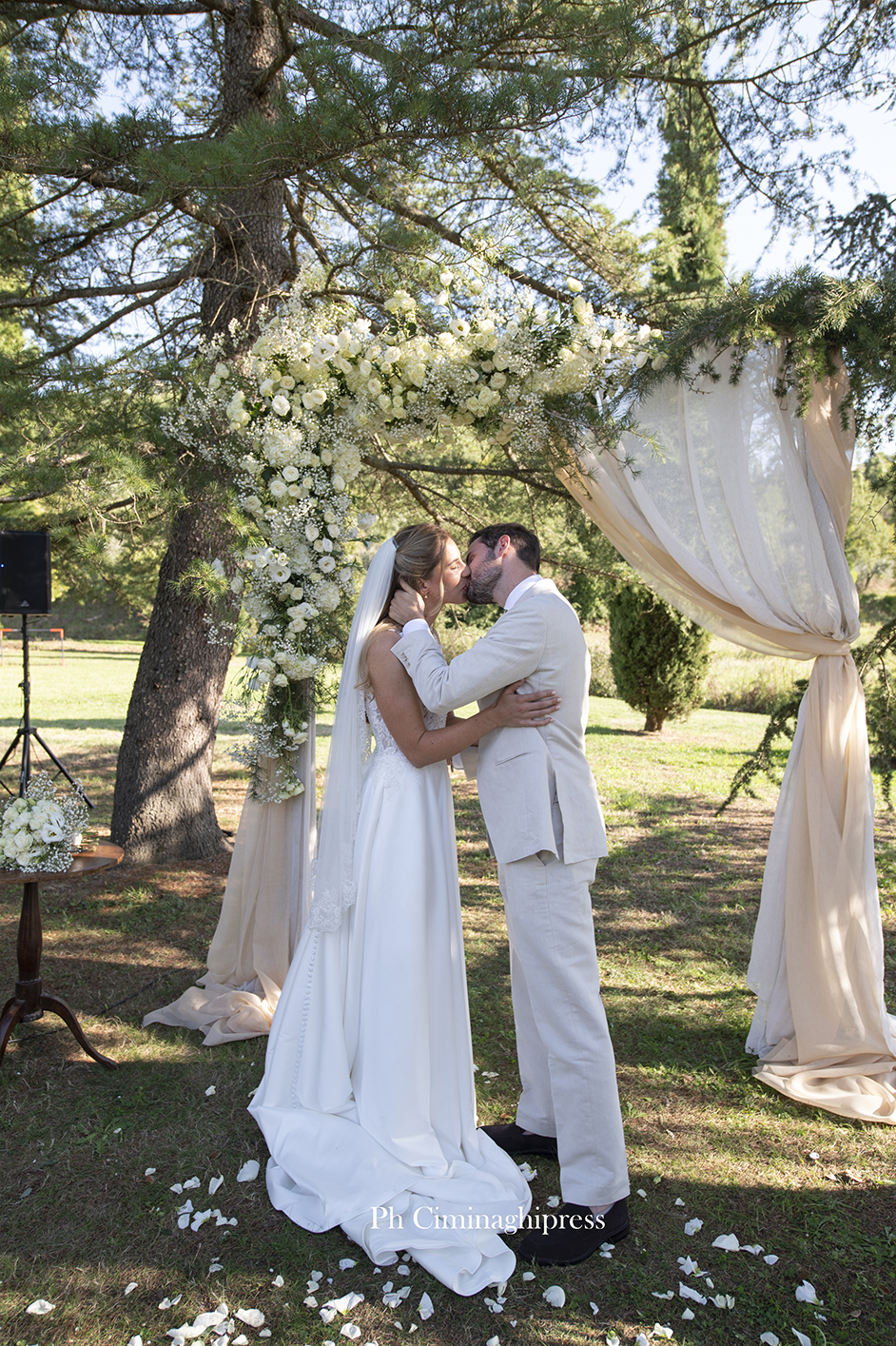 Wedding where the ceremony was held in the enchanting location Molino di Bordone, the service to the bride and groom with the sunset was very suggestive and the dinner by the pool created a splendid atmosphere.