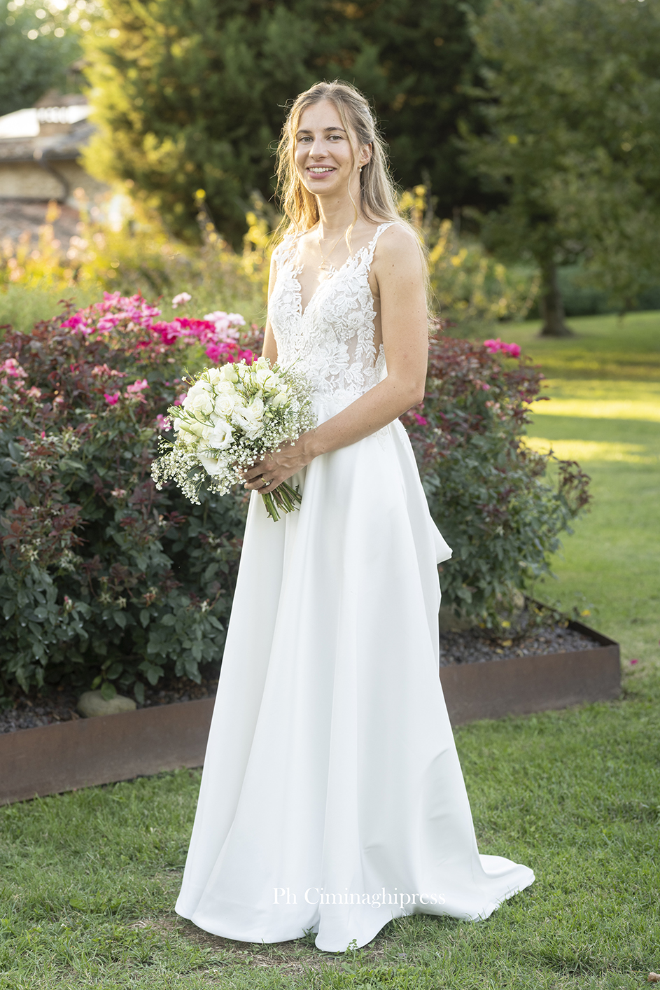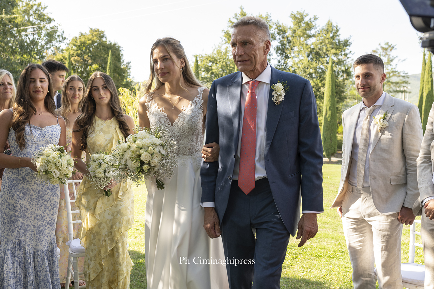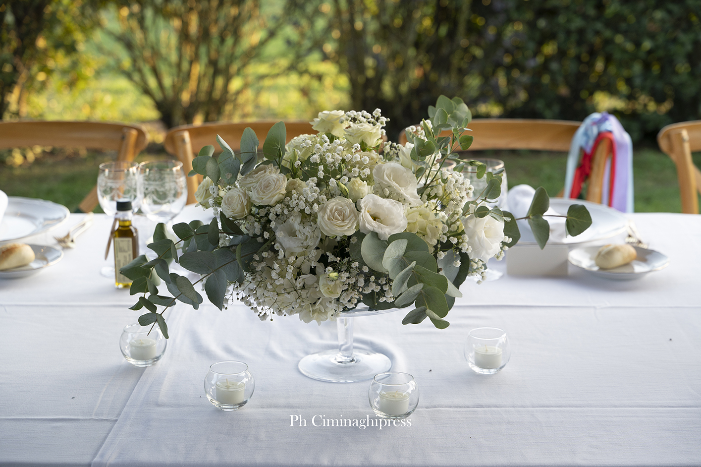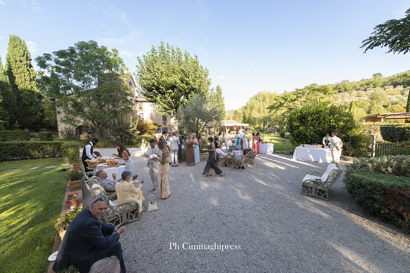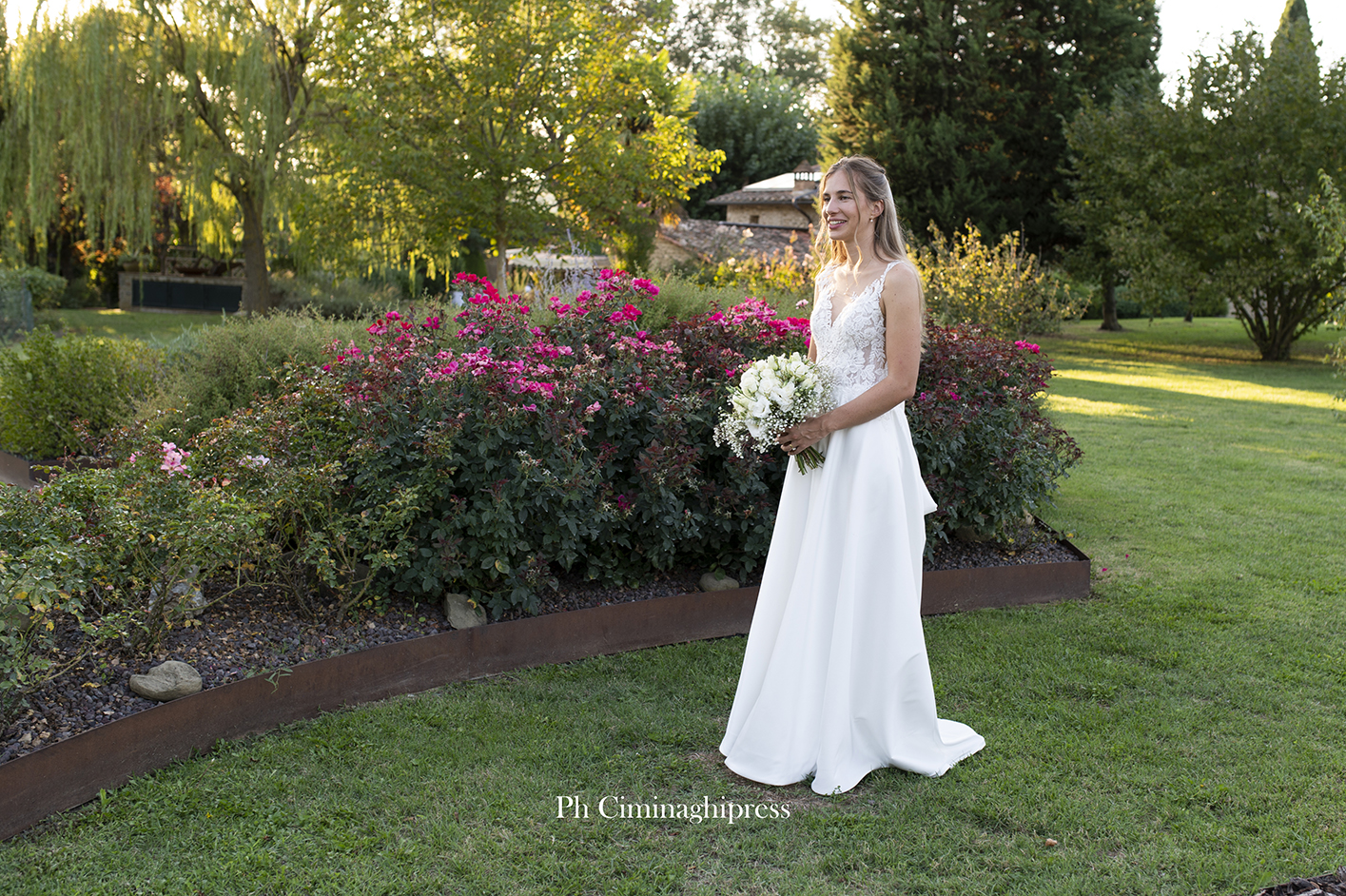 Wedding where the ceremony was held in the enchanting location Molino di Bordone, the service to the bride and groom with the sunset was very suggestive and the dinner by the pool created a splendid atmosphere.
